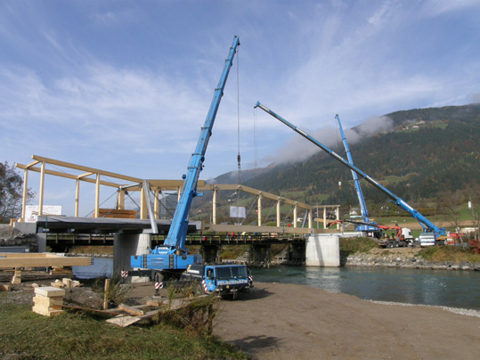 Derzeit aktuelles Vorzeigeprojekt ist die Holzbrücke Radlach über die Drau. Unser Büro war für die Entwurfsplanung, für die Variantenstudie, für die Tragwerksstatik und für die Ausführungsstatik verantwortlich. Die Holzbrücke Radlach ist derzeit die größte Straßenbrücke der Brückenklasse 1 bis 40 Tonnen in Kärnten.